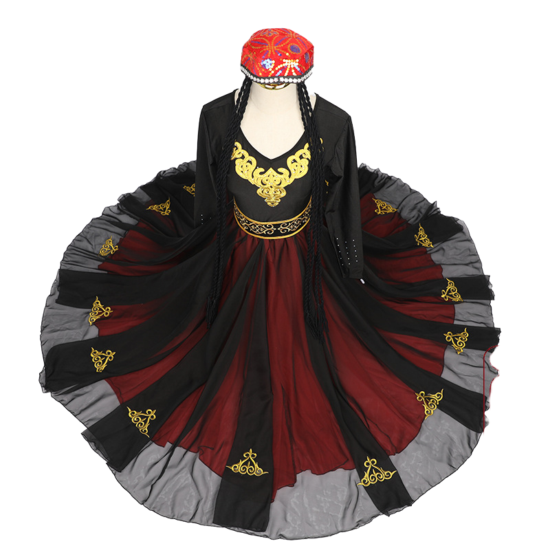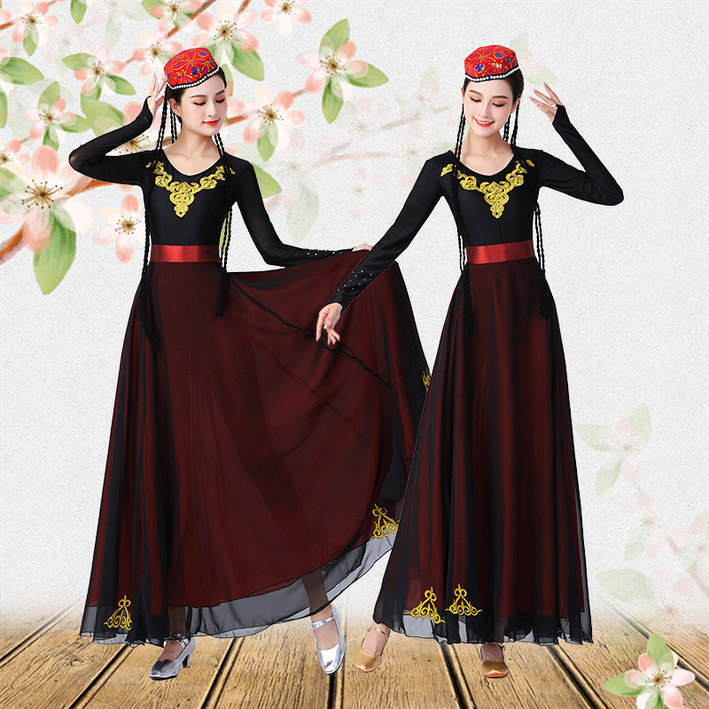 新疆维吾尔族舞蹈服装刺绣维族练习裙广场演出表演大摆裙艺考舞裙 - 征程工装职业装企业店