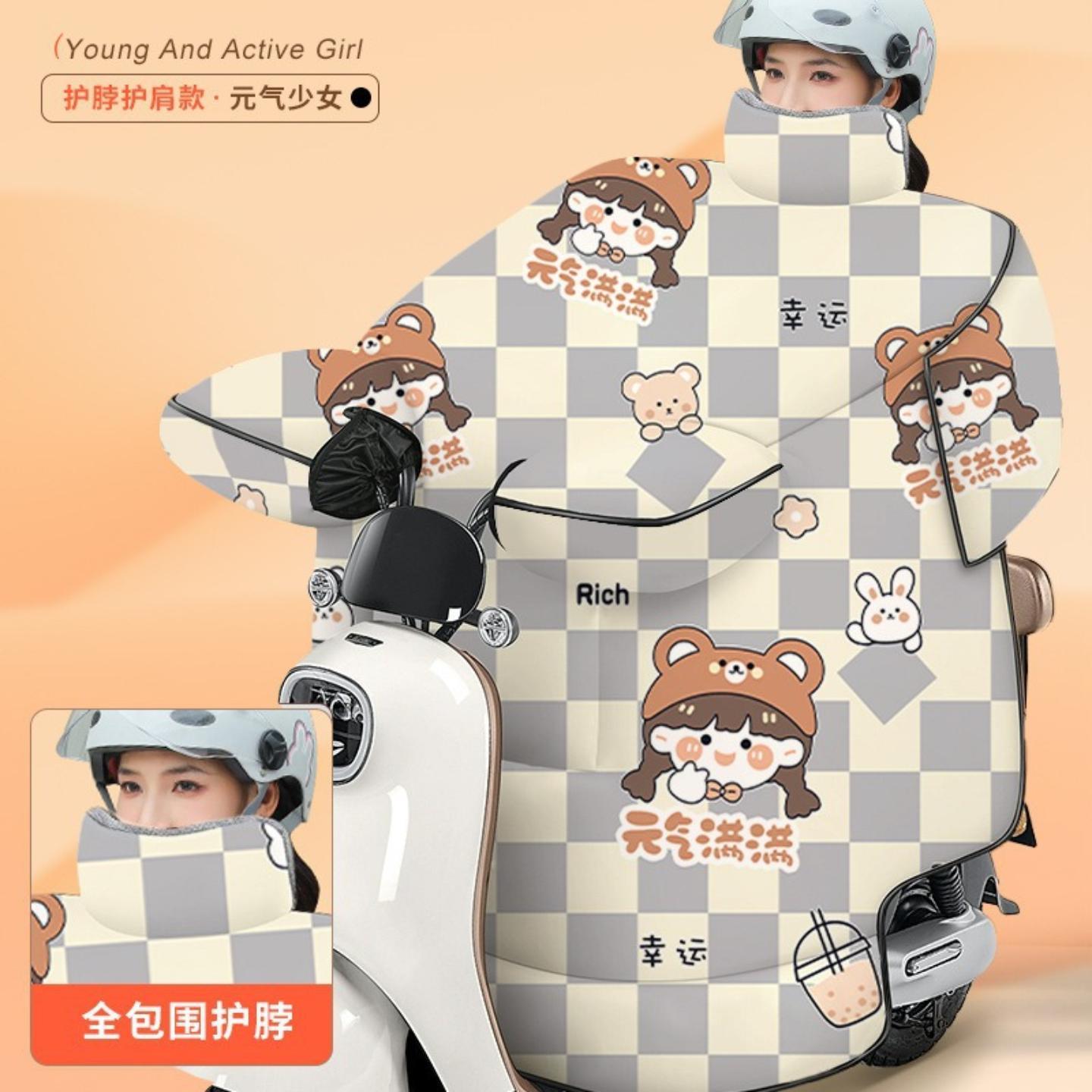 电动车挡风被可爱冬季加绒加厚冬天防风被挡腿被防水电瓶车档风被 - 恒通百货官营店
