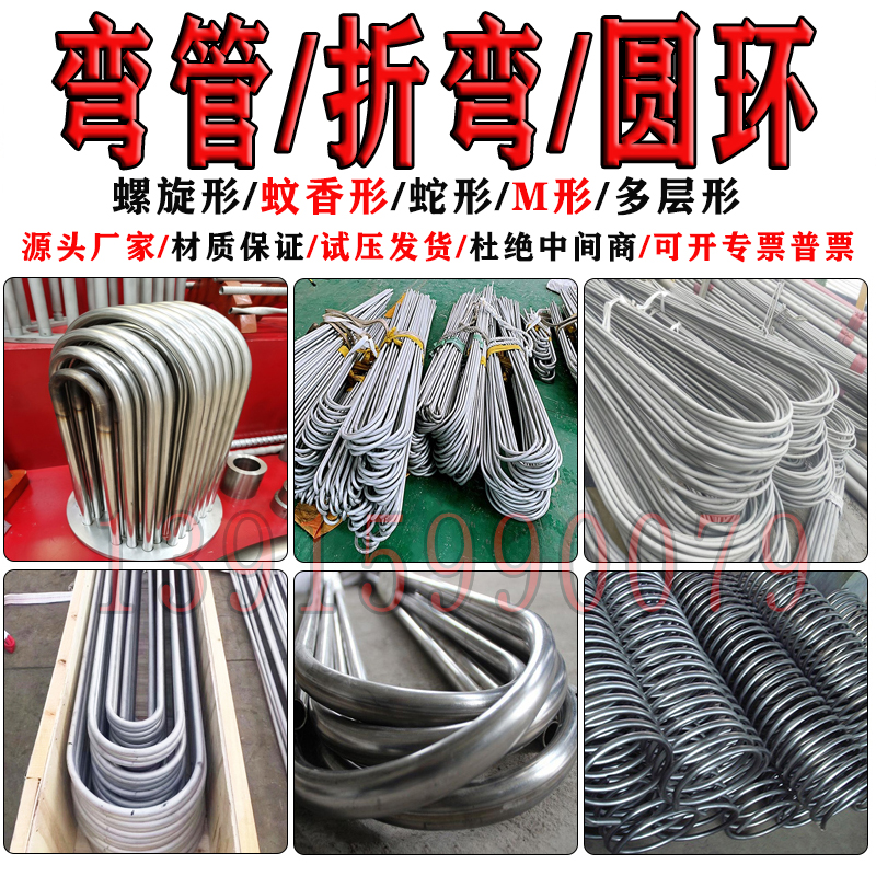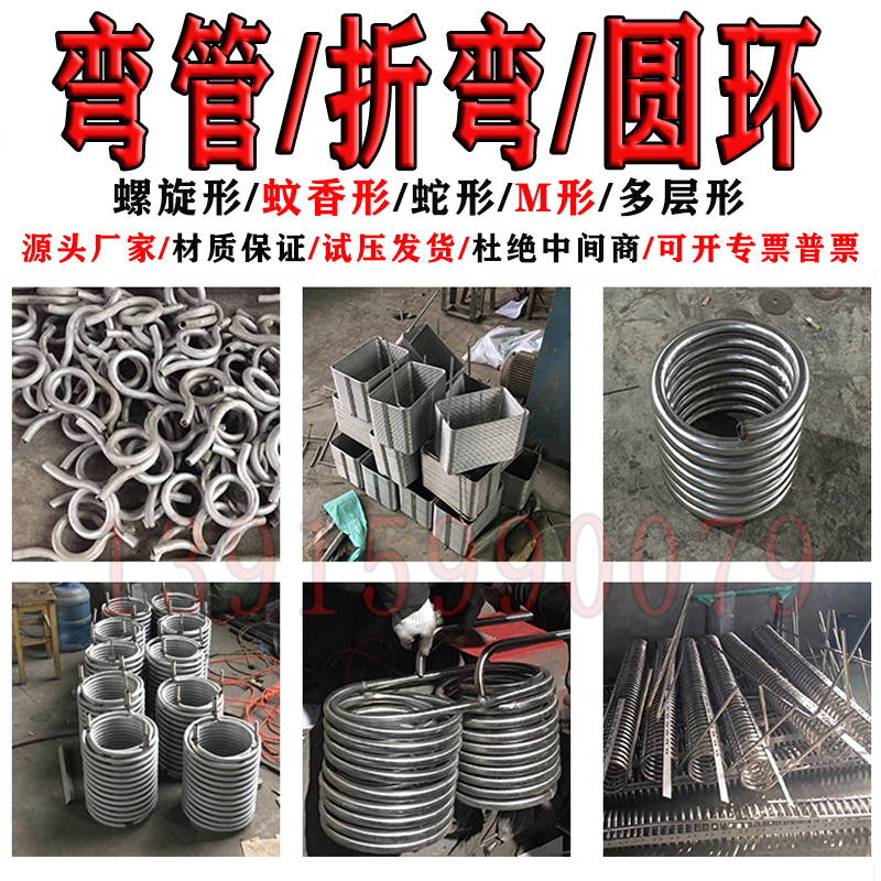 304不锈钢弯管盘管加工U形x弯S型弯M形蚊香管螺旋盘管换热器圆环