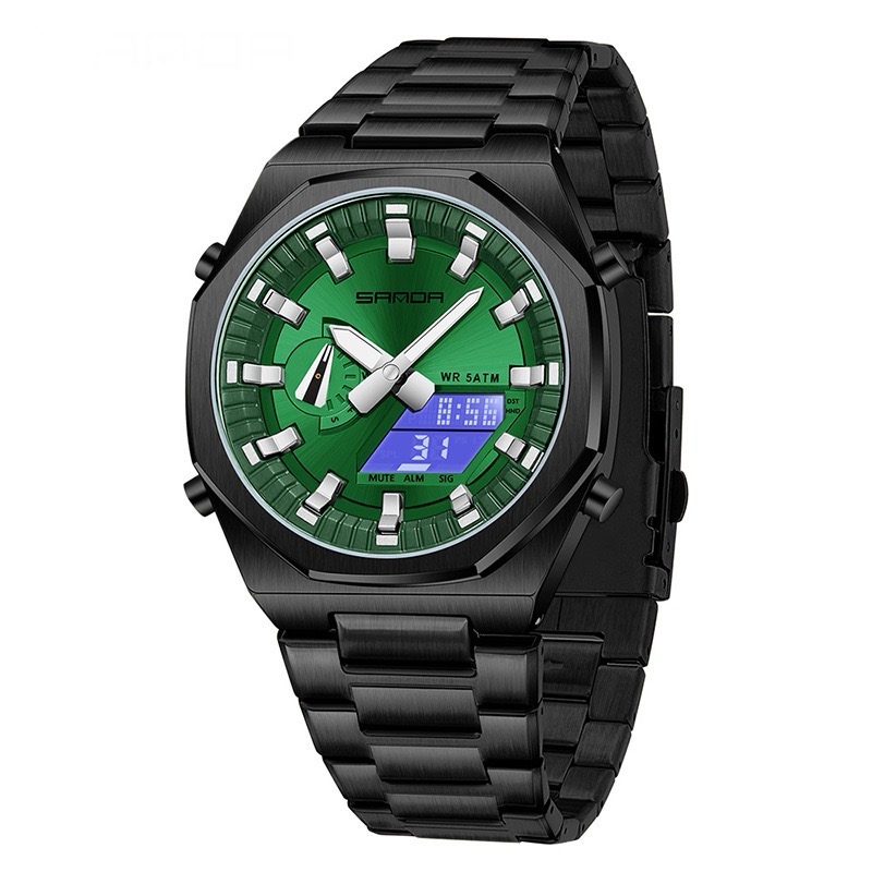 您的位置:他他商城  >   >  多功能双显同步夏令时男士手表商务学生倒计时闹钟防水钢带腕表男
