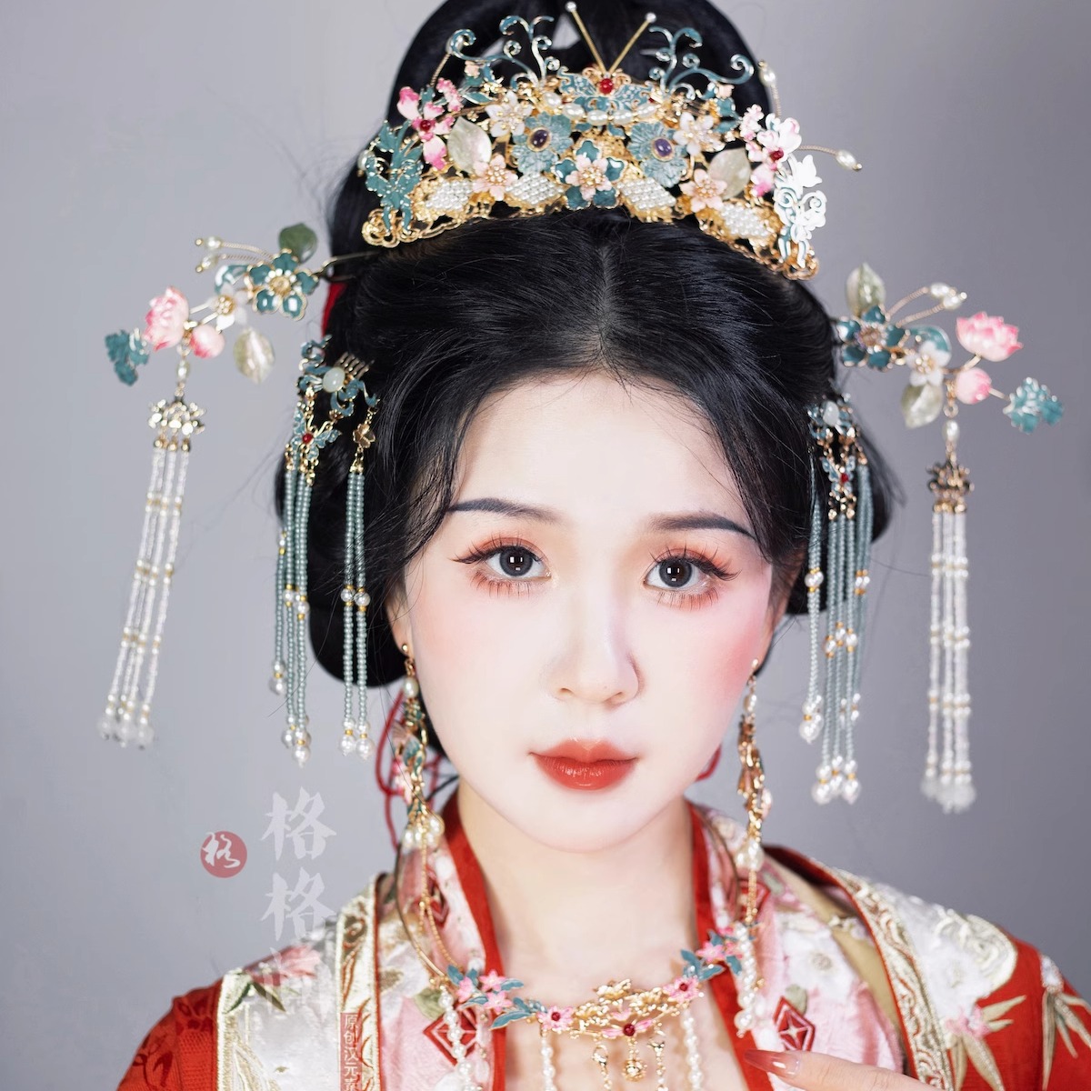 格格间原创【玉叶】华丽重工烧蓝滴油凤冠霞帔古风汉服配饰发簪 - 格格间 原创汉元素