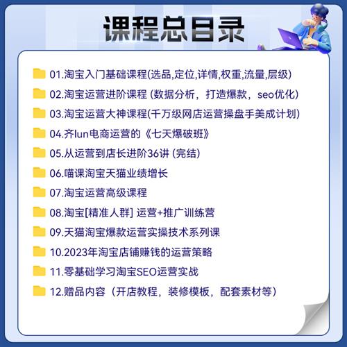 淘宝运营教.程网店开店电商推广选品直通车蓝i海培训视.频课.程
