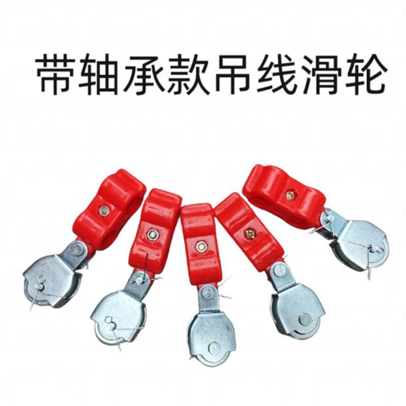 塑料吊线滑轮行车电动葫芦滑车钢丝绳双孔电缆铁轮轴承拖线电缆线 - 君吻汇底专卖店