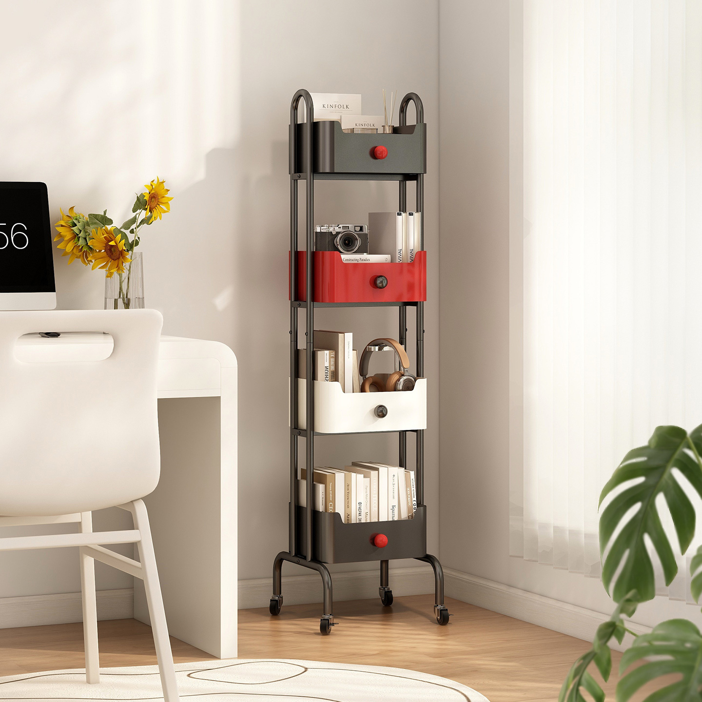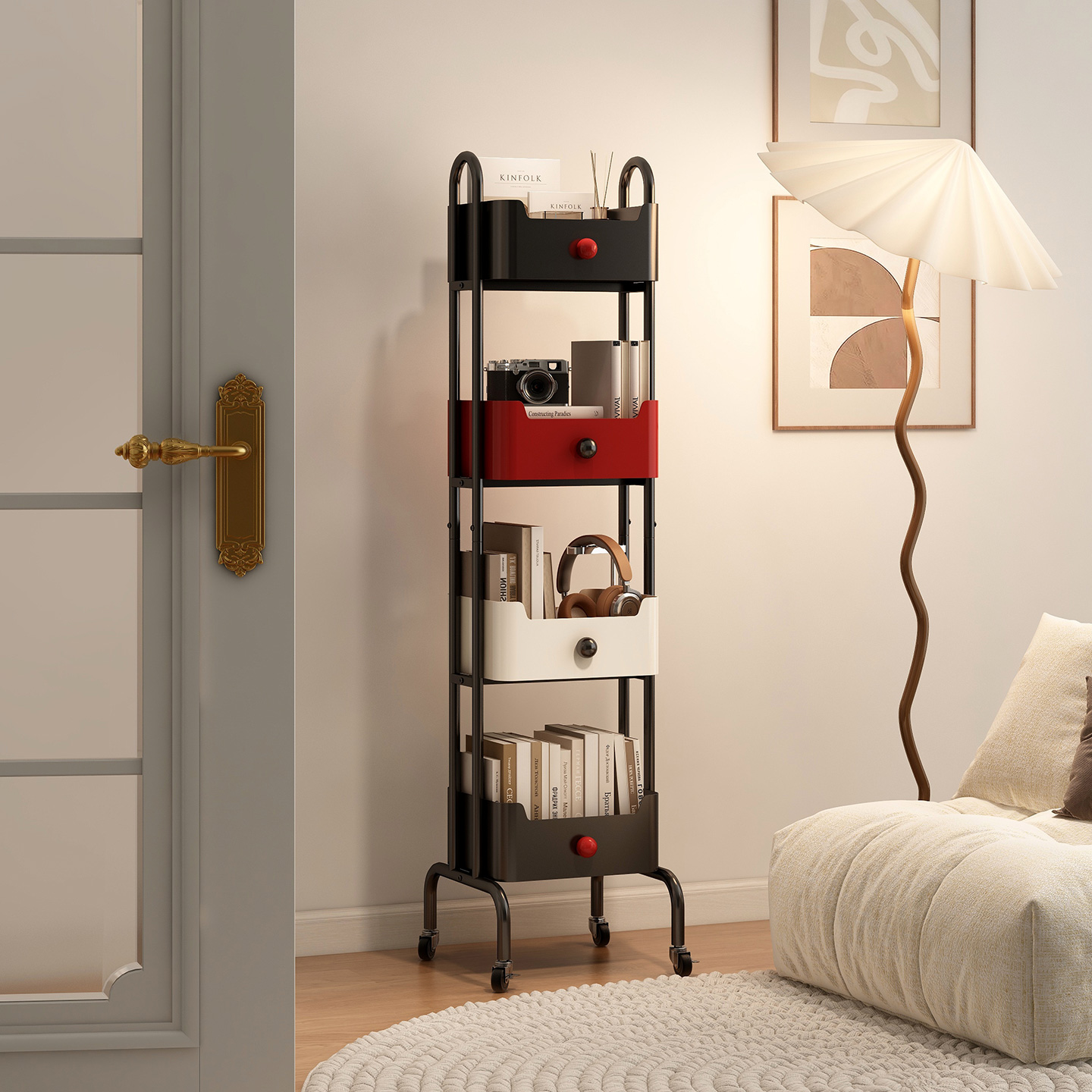 客厅零食小推车置物架家用书架多层落地收纳架子可移动厨房小窄柜 - 速立普旗舰店