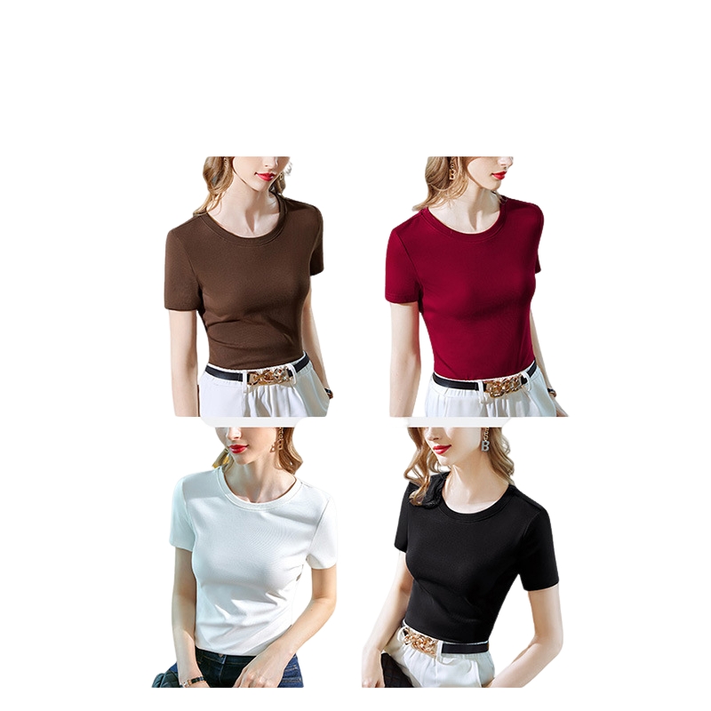 红色纯棉短袖t恤女士2025新款夏正肩圆领修身显瘦体恤高级感上衣 - 玉罗时尚女装