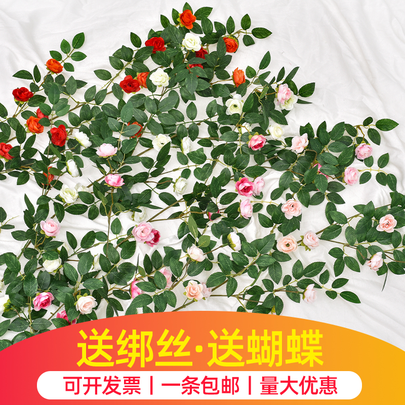 仿真小茶苞玫瑰花藤条室内软装空调管道装饰缠绕遮挡塑料假花藤蔓