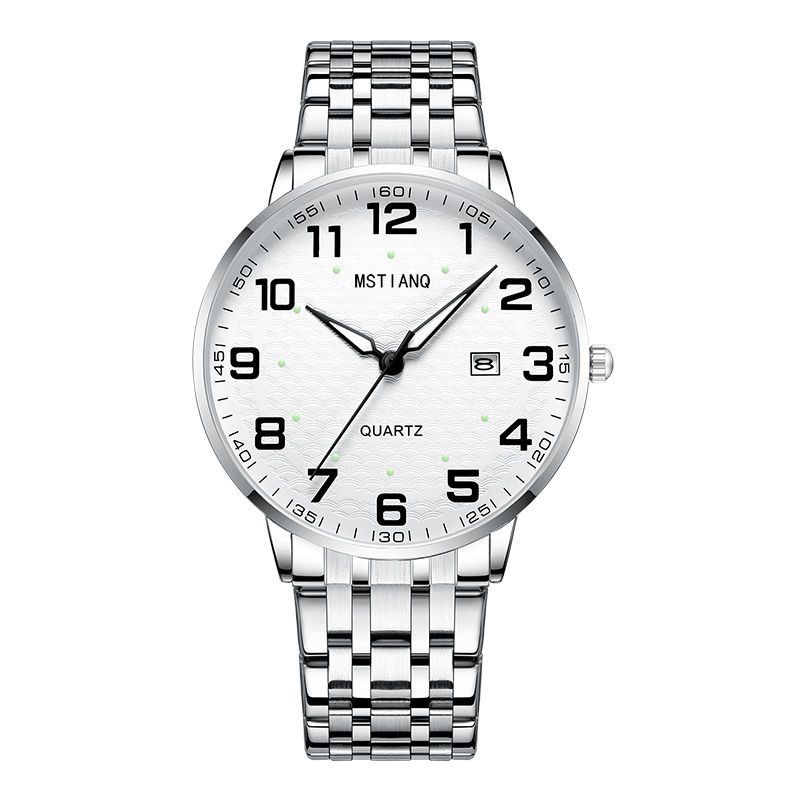 老人手表男女士款大数字防水松紧钢带中老年人电子日历夜光石英表 - 流丽百货商贸