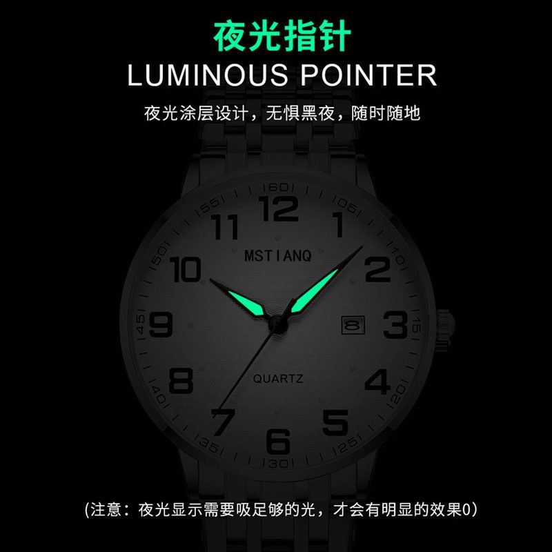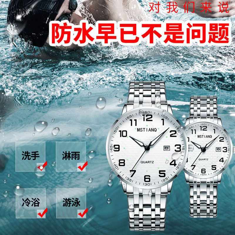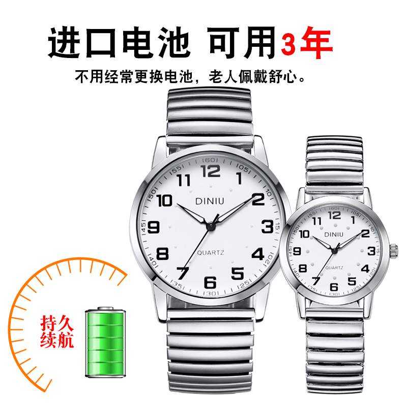 老人手表男女士款大数字防水松紧钢带中老年人电子日历夜光石英表