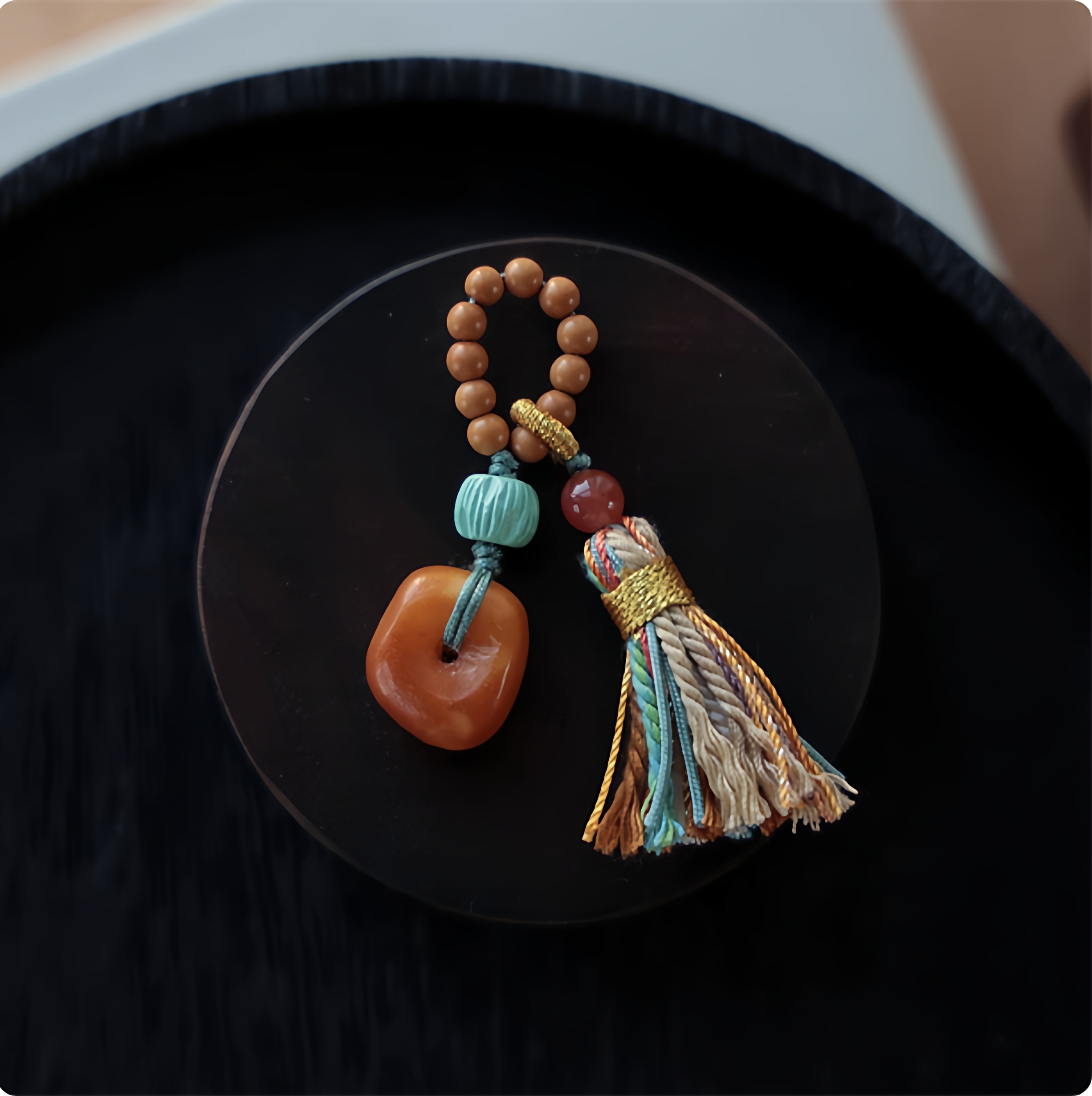 藏式方扣小滴溜跑环流苏挂件吊坠文玩配件2025新款复古小众设计感 - 山城玫瑰