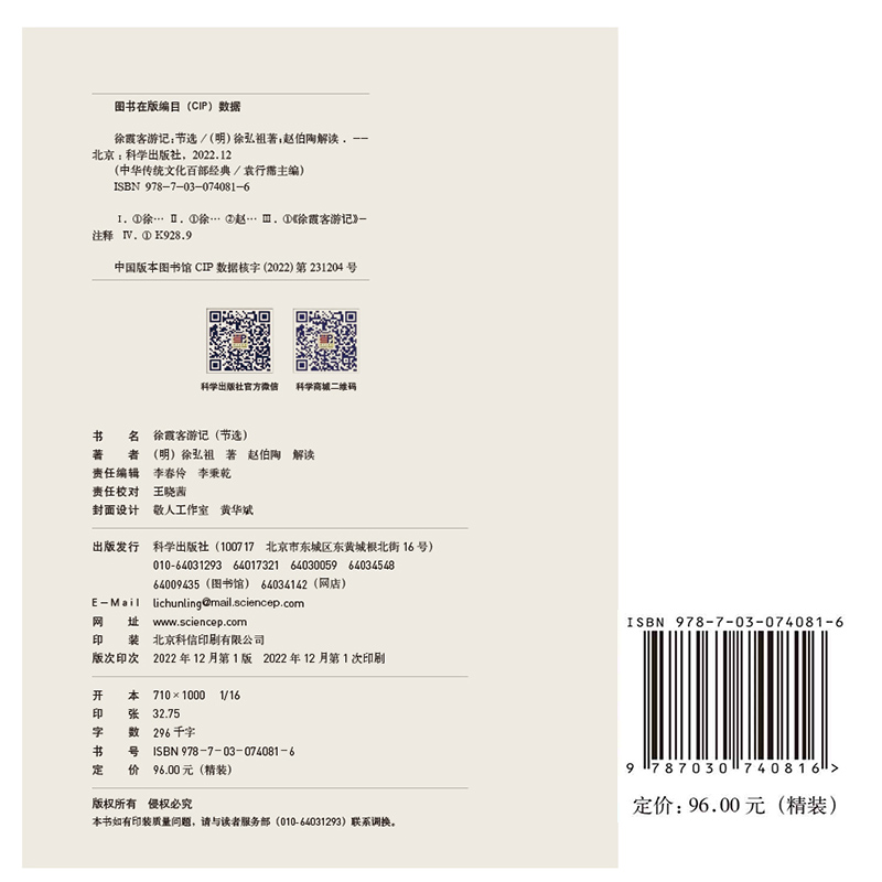 现货正版 中华传统文化百部全书 徐霞客游记 节选 科学出版社 徐弘祖著 赵伯陶解读 9787030740816 - 希尔麦图书专营店