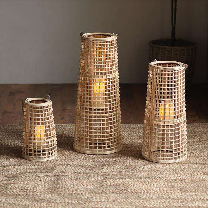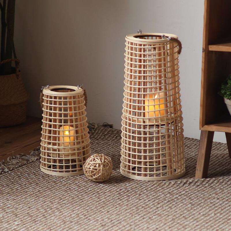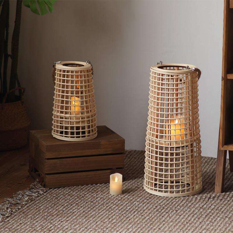 藤编手提灯落地风灯高款插电烛台拍摄道具设计师摆件灯笼简约现代 - rgeyycaisb的小店