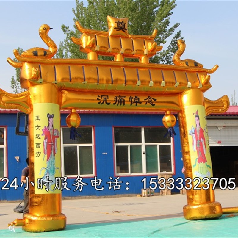 金色牌坊白事气模充气拱门金狮子风机包邮灵棚定做充气灵堂彩虹门 - 捷加商贸