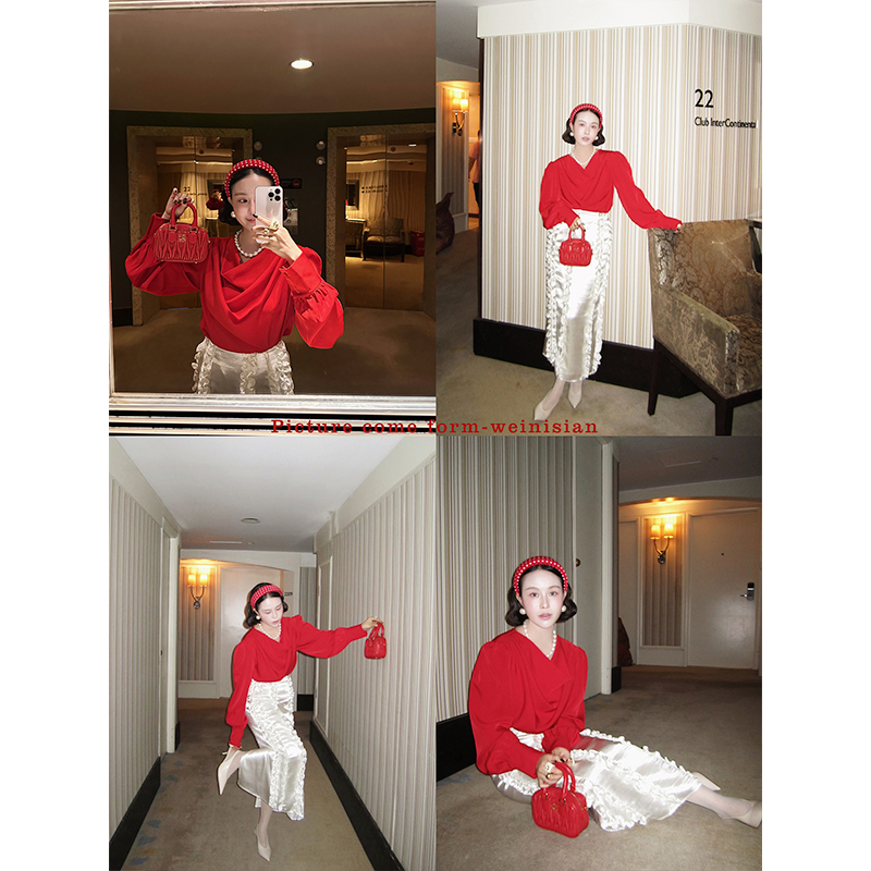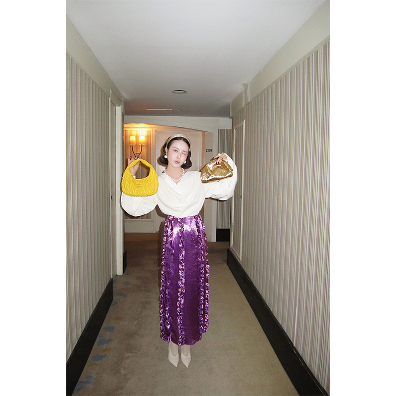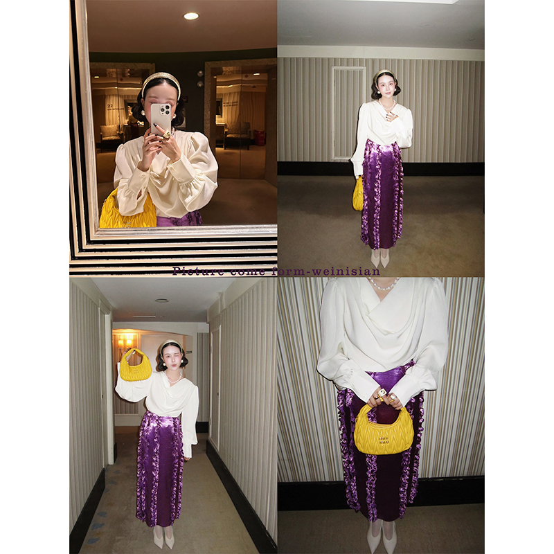韩国小众设计 缎面木耳边半身裙 - WEINISIAN朱小姐