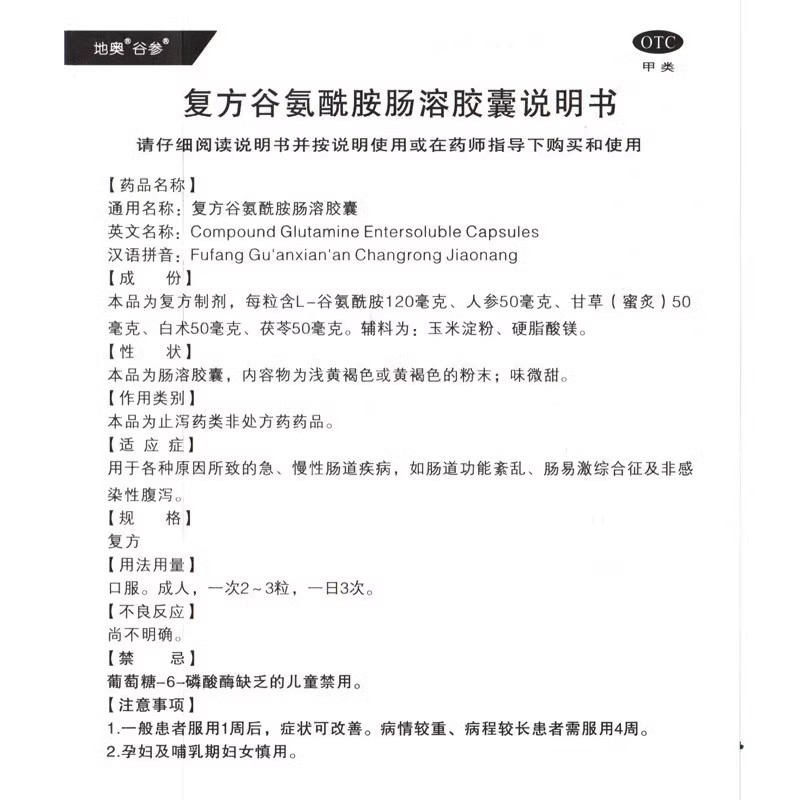 复方谷氨酰胺肠溶胶囊32粒地奥 肠功能紊乱腹泻急慢性 - 同慈大药房旗舰店