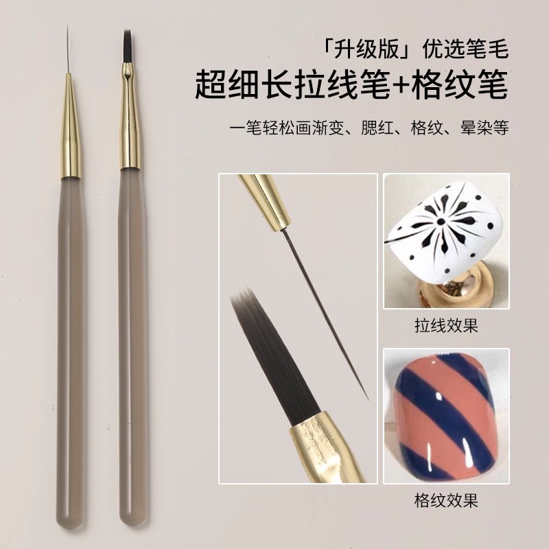 新款加长格纹美甲笔软弹柔韧细腻多功能拉线彩绘法式扫扫笔刷工具