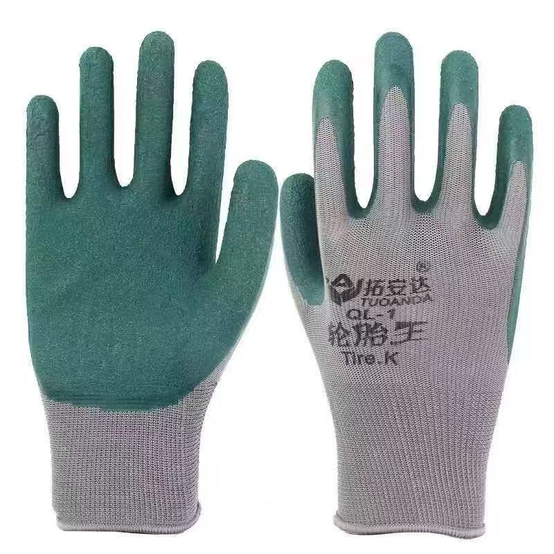 拓安达乳胶劳保手套轮胎王耐磨全挂PVC加厚工地干活防护橡浸挂胶 - 永辉手套厂家