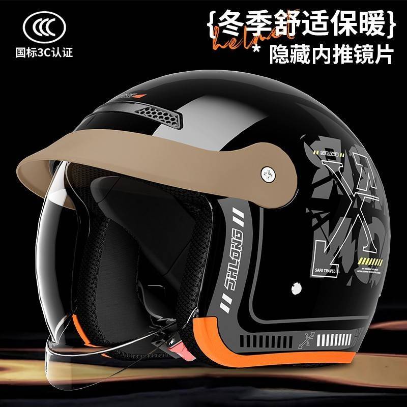 3C认证电动摩托车头盔内推式男女四季通用半盔冬季保暖骑行安全帽