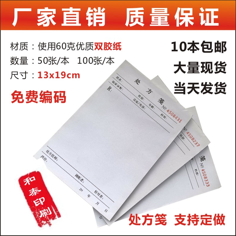 医院门诊通用处方笺医用药店处方单卫生室处方本中医便签定做现货 - 广州和泰印刷