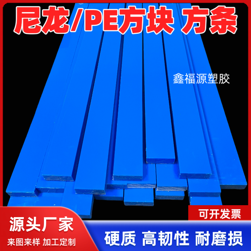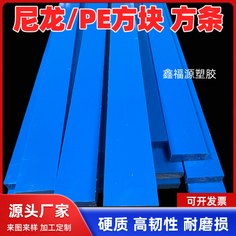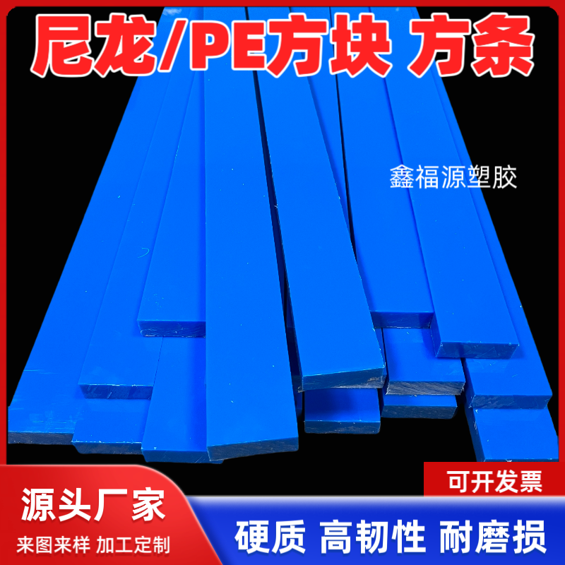 蓝色耐磨尼龙pa长条硬质塑料pe板方条加厚垫板聚乙烯扁条加工定制 - 鑫福源塑胶