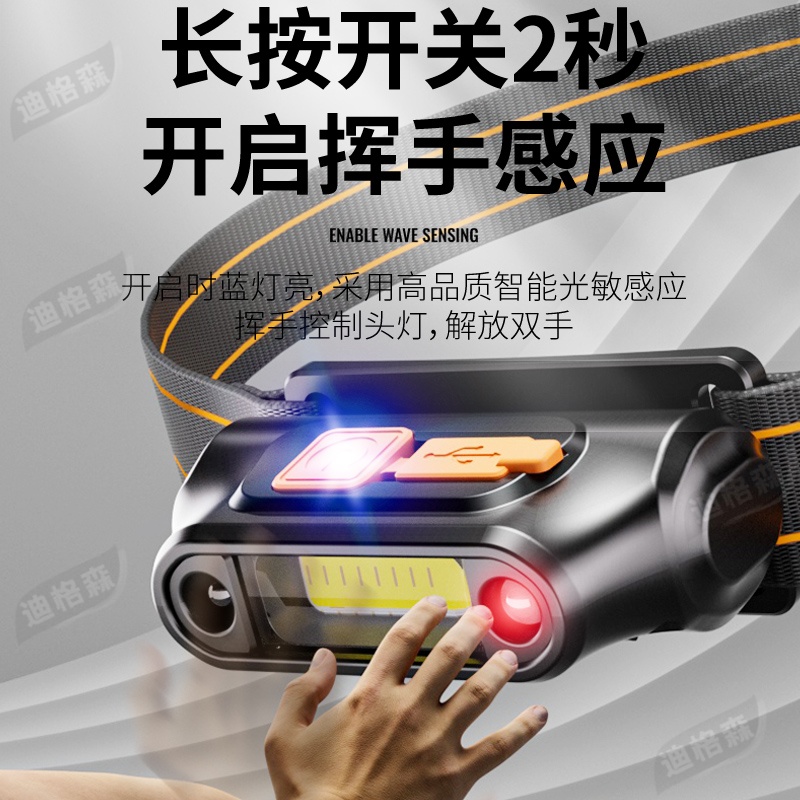 钓鱼头灯专用感应超长续航头戴式充电COB泛光散光大面积上饵料灯