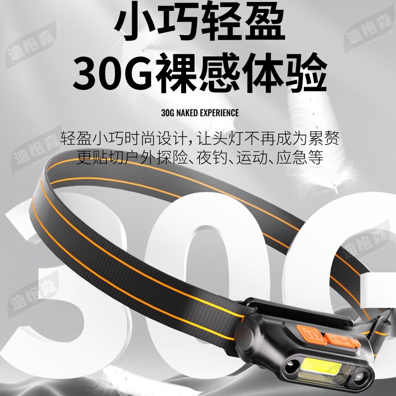 钓鱼头灯专用感应超长续航头戴式充电COB泛光散光大面积上饵料灯 - 探云户外用品店