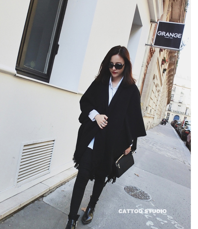 您的位置:他他商城  >   >  秋冬男纯黑流苏仿羊绒围巾女长款春秋加厚超大披肩两用斗篷女
