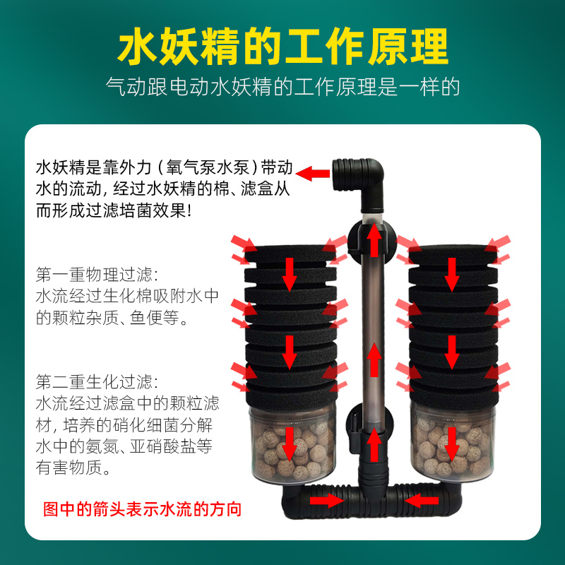 信友电动水妖精气动式氧气泵小型鱼缸过滤器三合一增氧净水反气举 - 汪汪水族