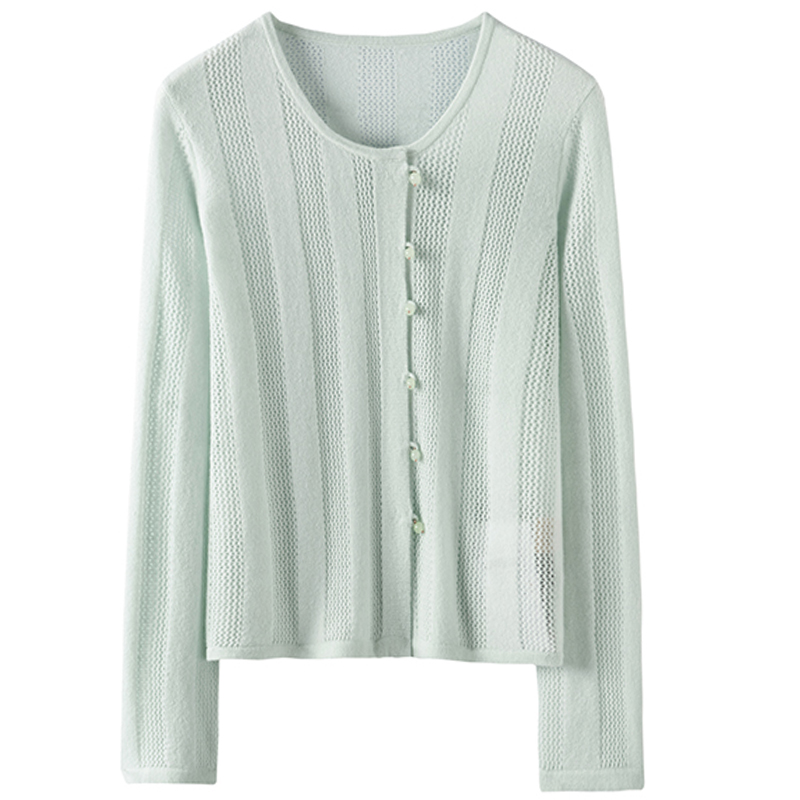 设计感满格~100%纯山羊绒开衫女圆领秋冬新品针织薄外套保暖毛衣 - 冬凤凰旗舰店