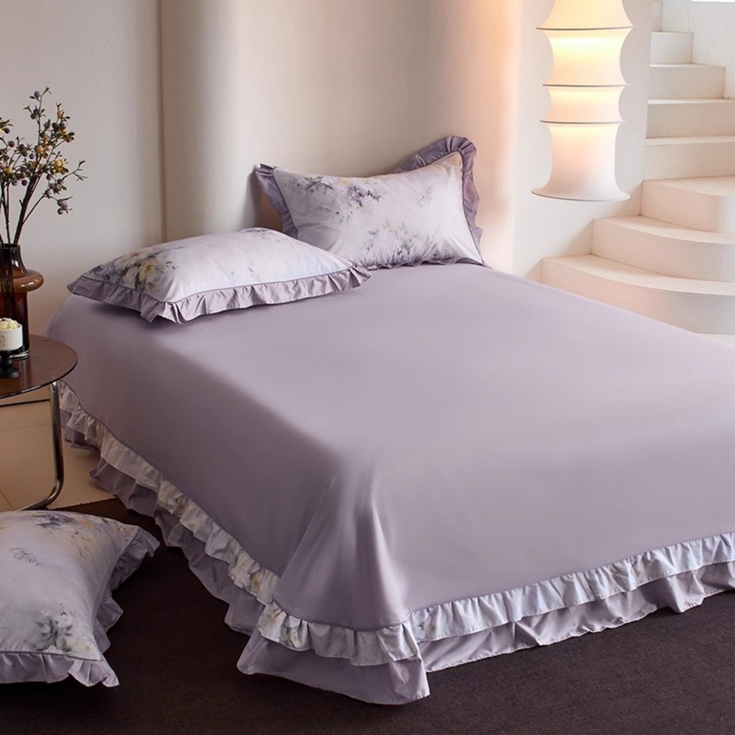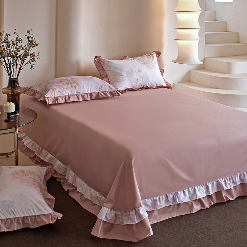 床单单件纯棉100全棉新款四季高级紫色加厚被单枕套三件套花边大 - 水晶温馨家纺