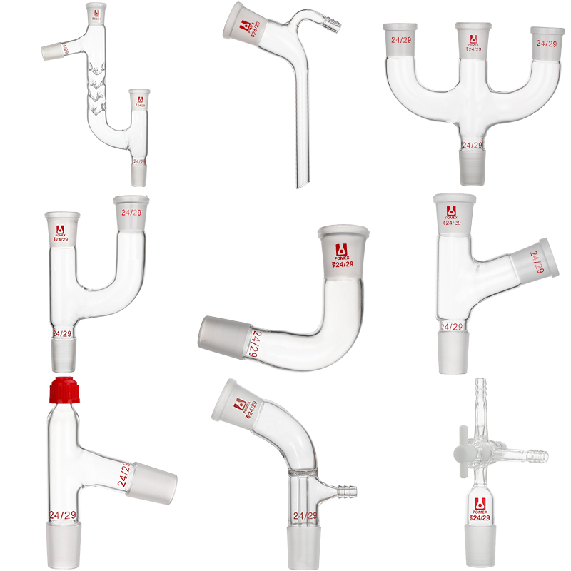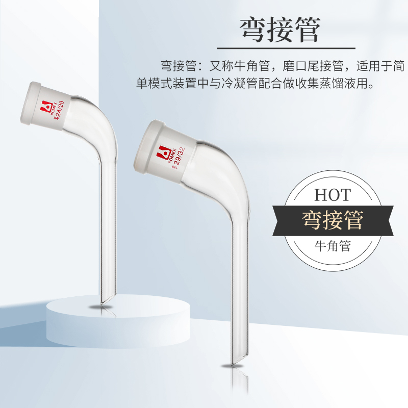 玻璃弯接管牛角管克氏分馏头蒸馏弯头玻璃抽气接头螺口卜字弯形直形具嘴真空接受管19/24/29二口连接管蒸馏头 - 荣力普旗舰店
