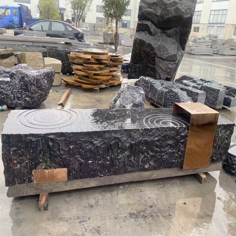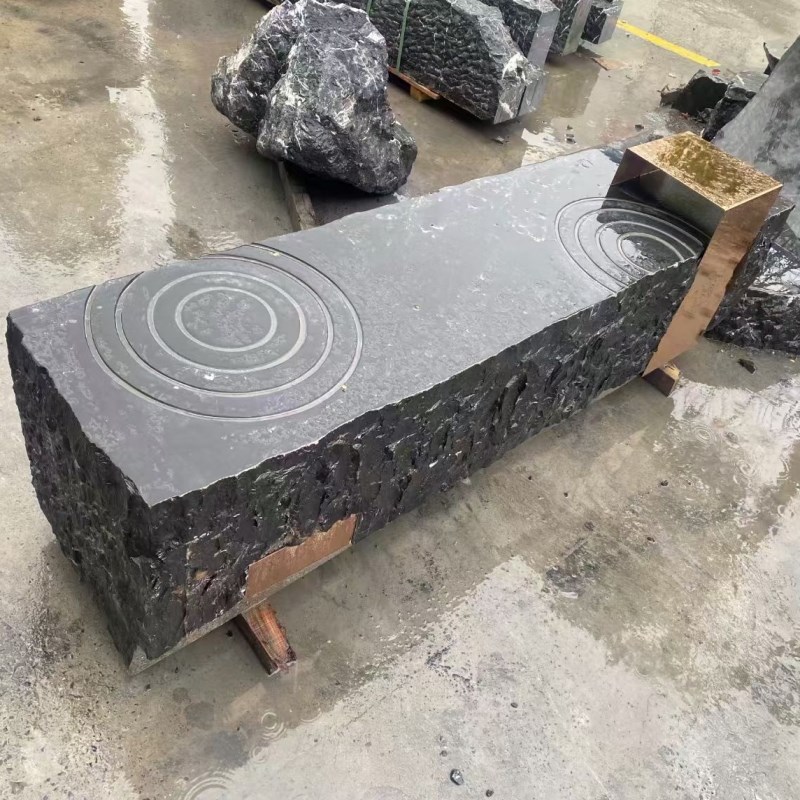 黑山石长条凳子加k工石材异型加工石桌石条石凳景观石加工石材切