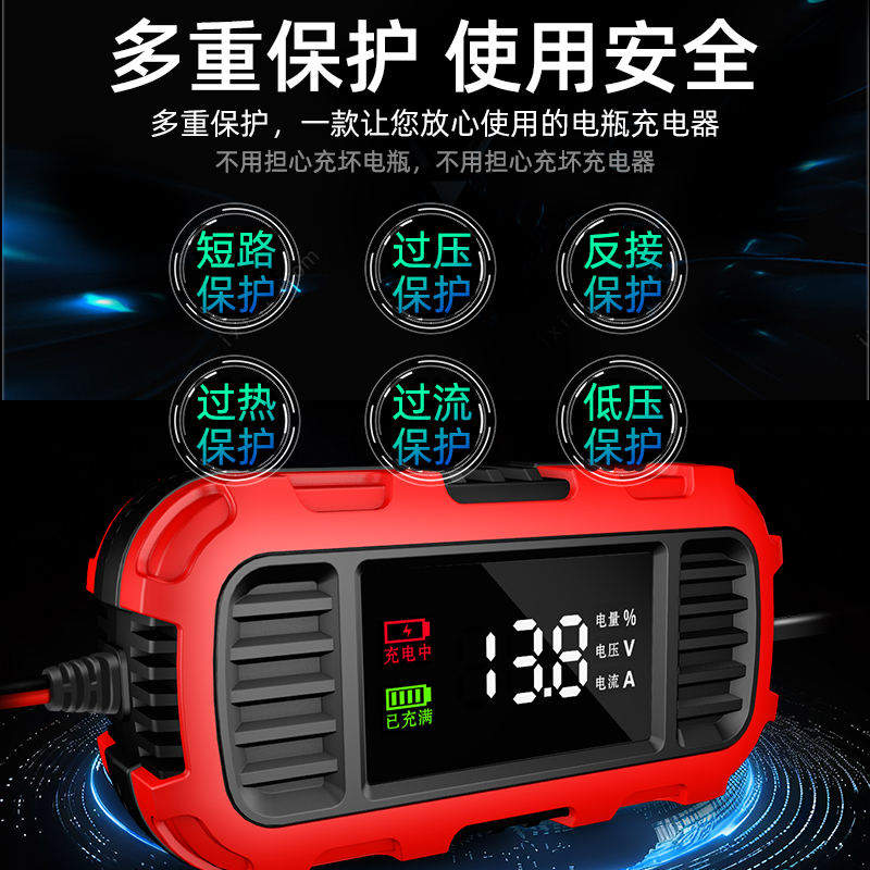 徽农摩托车电瓶充电器12v伏踏板铅酸蓄电池自动通用全智能充电机 - 金力豹汽车用品专营店