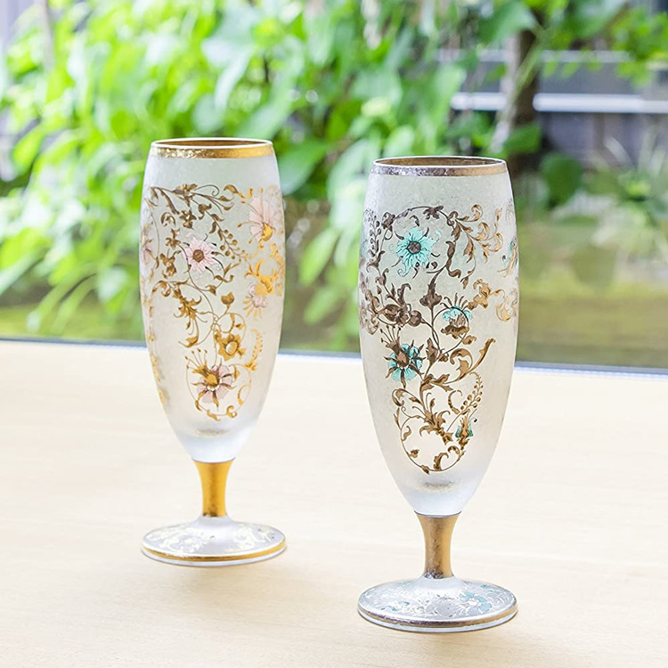日本进口石塚樱花描金香槟杯 高脚红酒杯 乔迁生日结婚礼物对杯 - 谷井村(日本代购)
