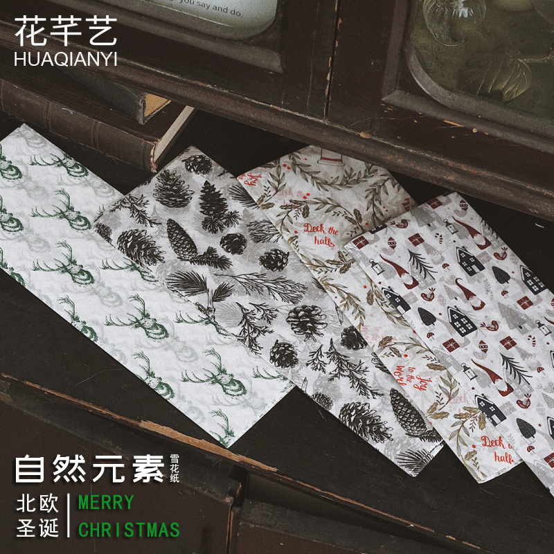 圣诞节包装纸圣诞雪梨纸花束打底内衬纸花店圣诞礼物平安果包花纸