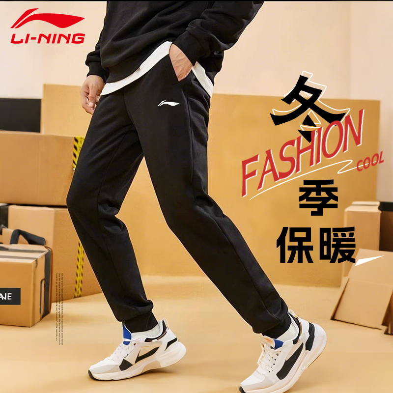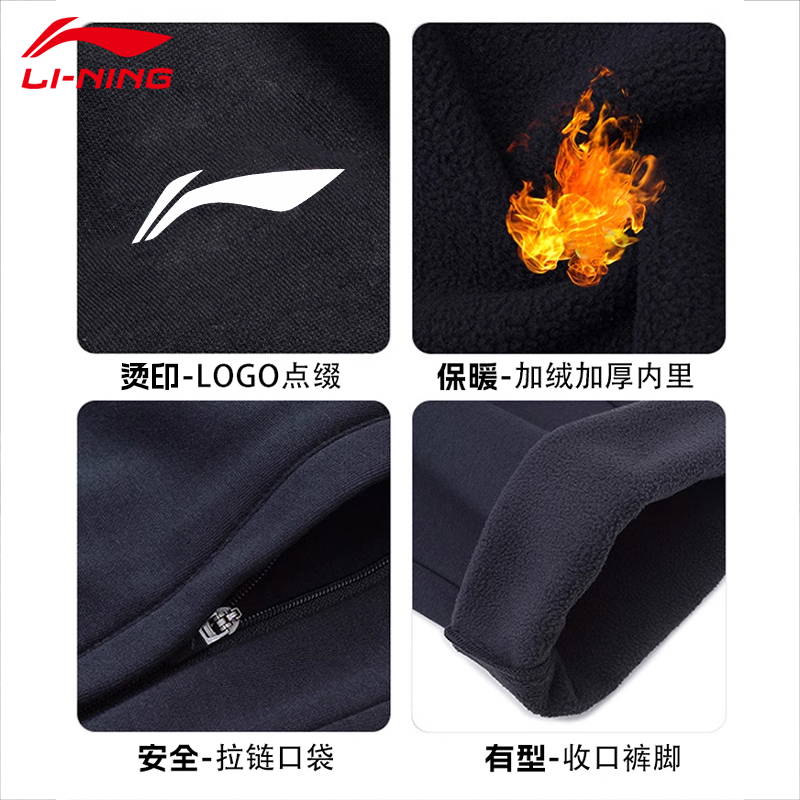 李宁运动加绒裤男士2025新款冬季加厚束脚卫裤保暖男款长裤子防寒 - 文铖运动专营店