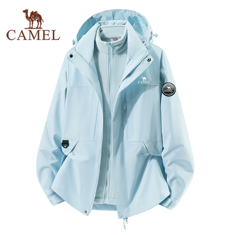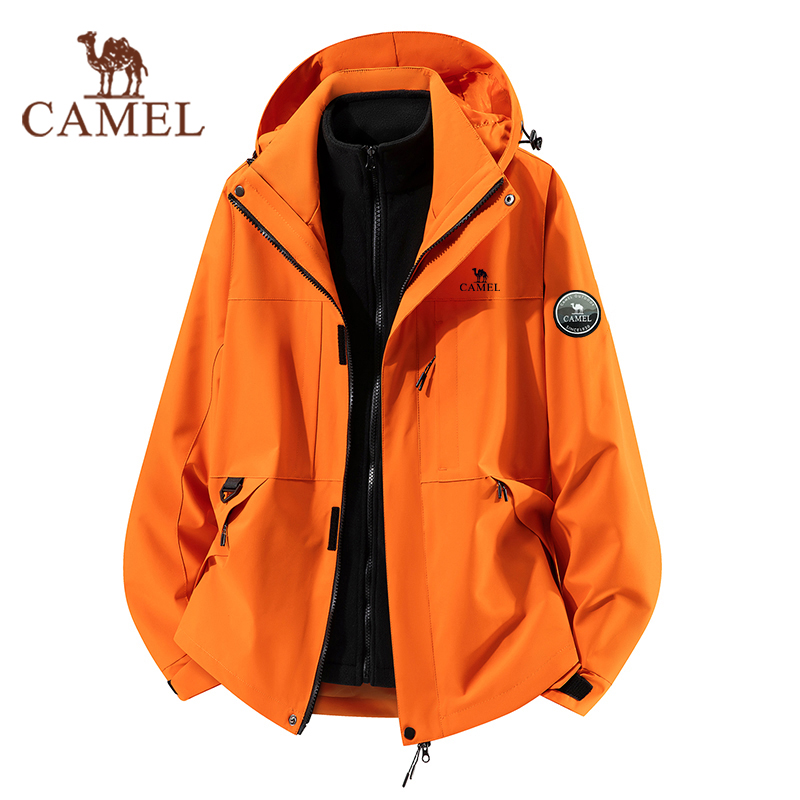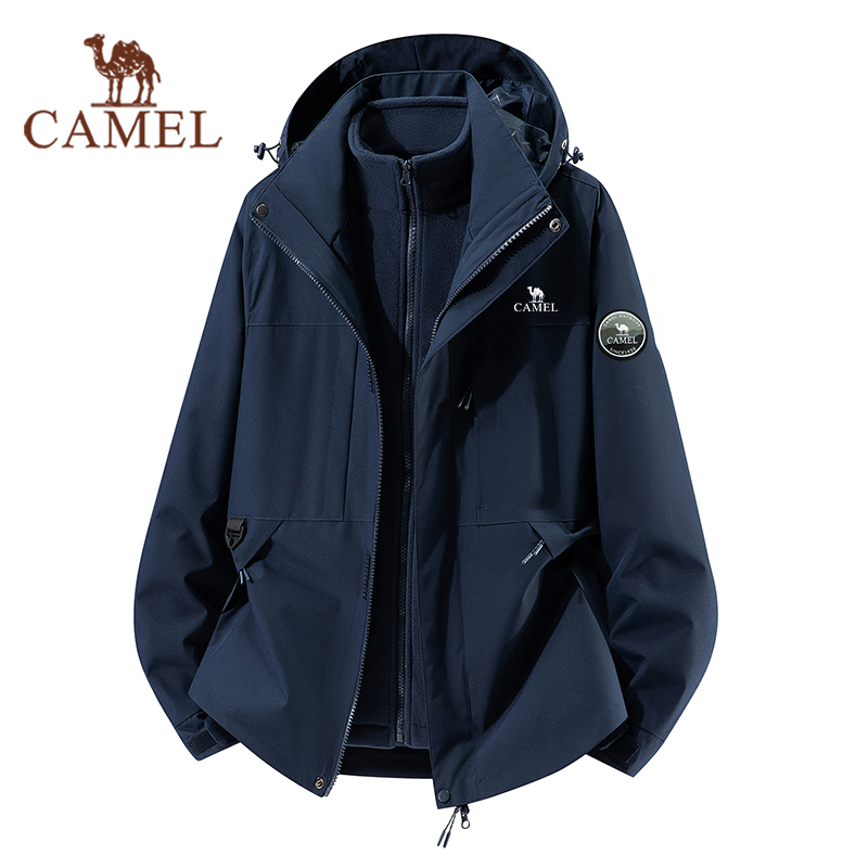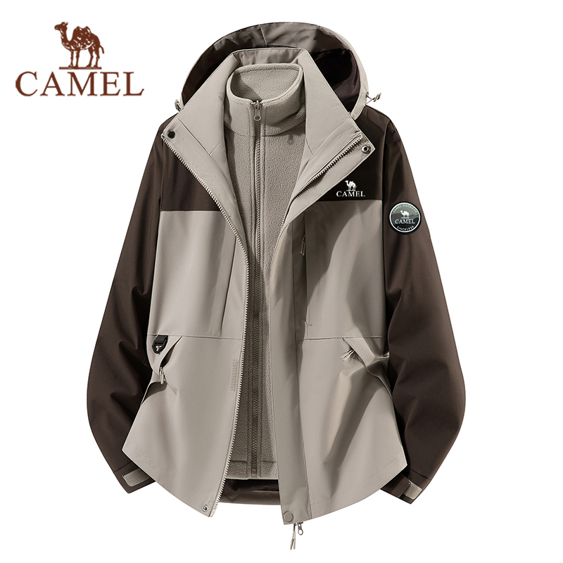 骆驼户外冲锋衣男女款三合一可拆卸外套幻影黑加厚防风防水登山服 - 户外防晒衣折扣店