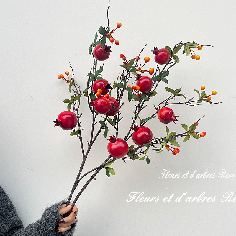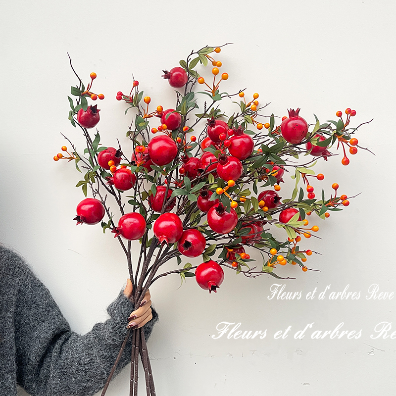 2026年新款石榴仿真花新年宵花红浆果发财花装饰假花高枝果实花束 - 花溪树梦旗舰店