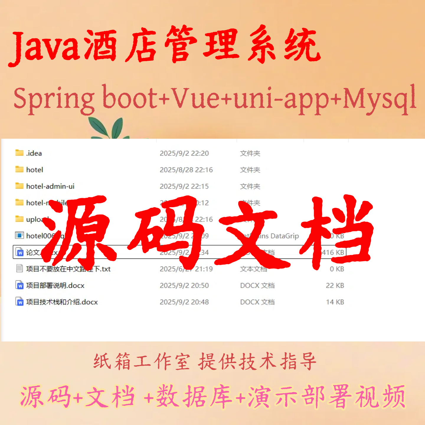 Java酒店管理系统源码文档uniapp系统Springboot小程序uniapp项目 - 纸箱科技