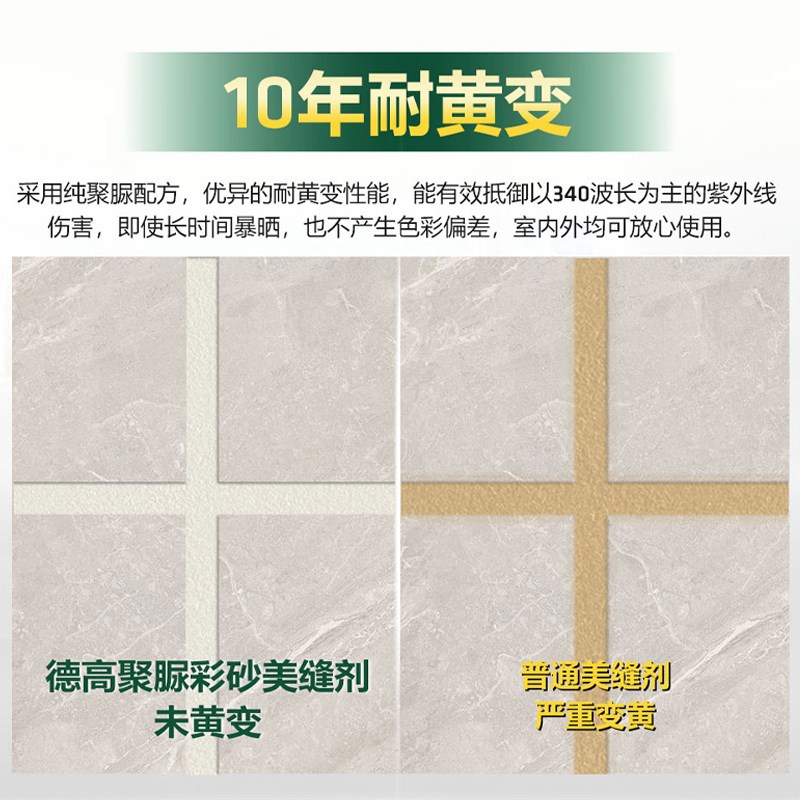 您的位置:他他商城  >   >  德高天冬聚脲彩砂美缝剂瓷地砖专用防水防Q霉厨房填缝耐黄变纯