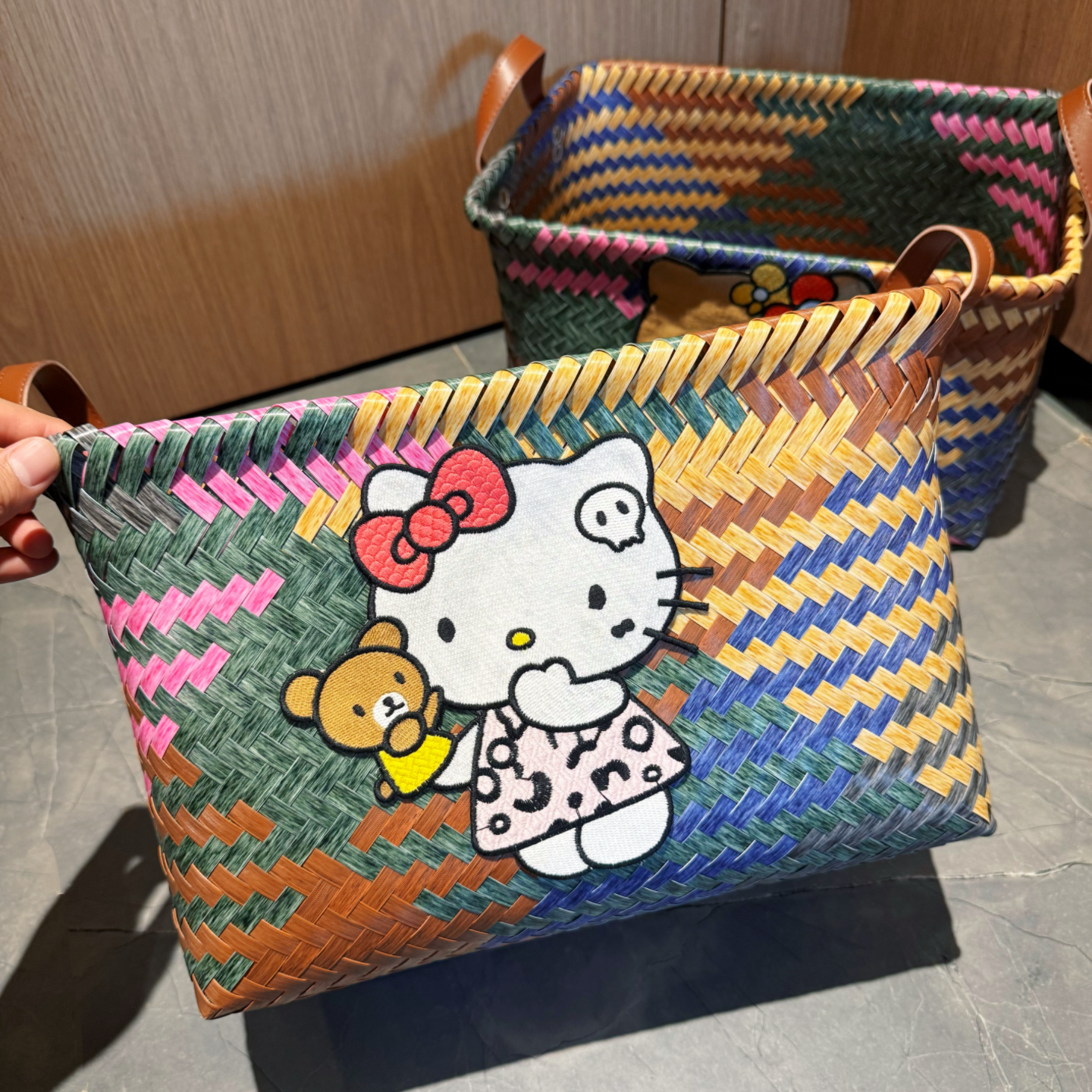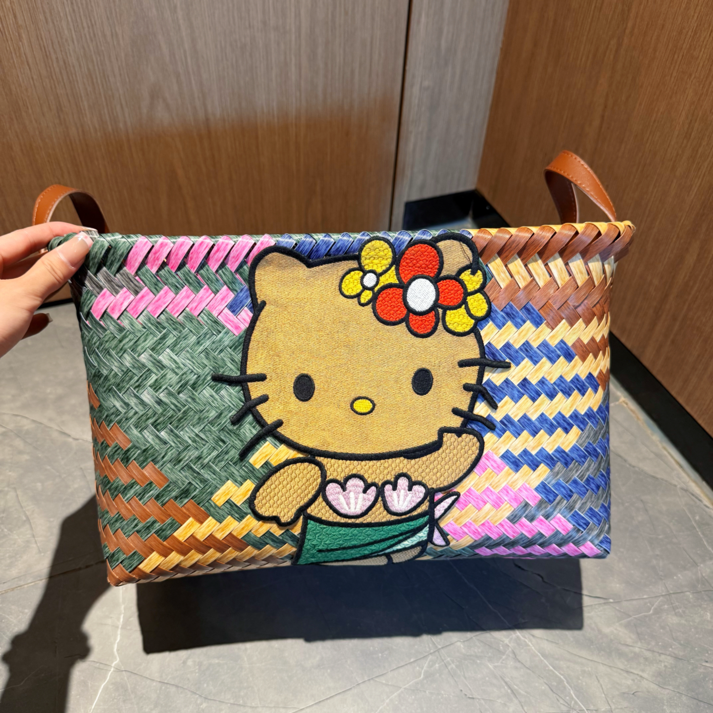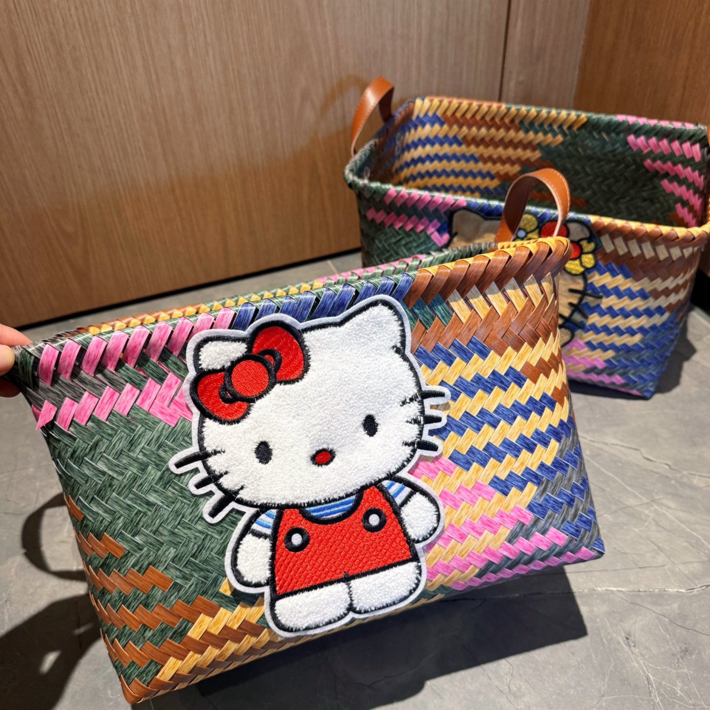 kt猫咪编织收纳筐仿藤编零食玩具筐卧室浴室脏衣篮衣服收纳筐车载 - 一家平价店1
