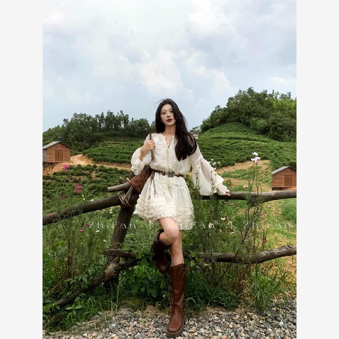 您的位置:他他商城  >   >  新疆云南川西草原拍照旅游穿搭刺绣马甲长袖连衣裙子套装度假女装