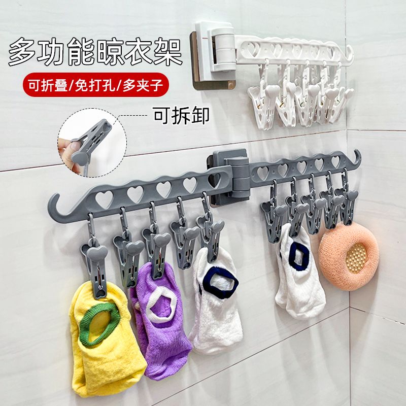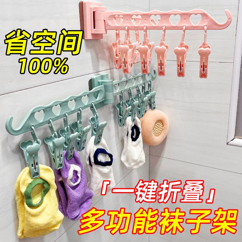 您的位置:他他商城  >   >  晒衣服固定神器多功能家用袜子晾衣架卫生间夹子阳台衣架旋转可折