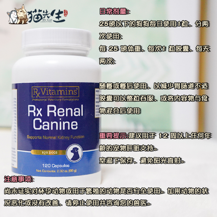 顺丰 美国犬用RxVitamins狗肾胺RenalCanine慢性肾病抗氧化蛋白尿 - 猫先生良品屋