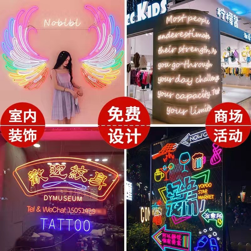 霓虹灯发光字网红手举牌q国潮风翅膀烧烤led灯带背景墙广告牌定制 - yyqxdddttt的小店