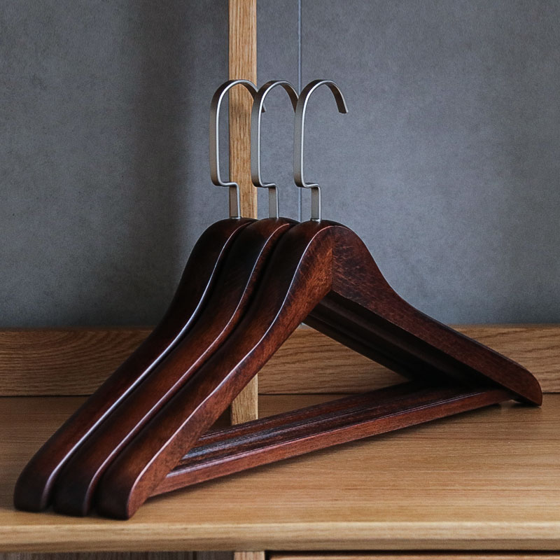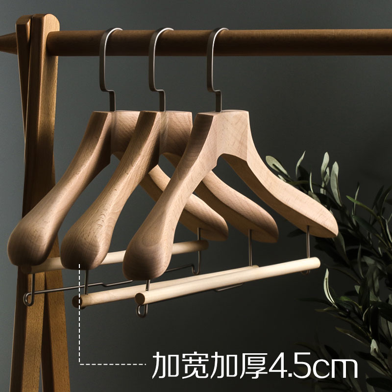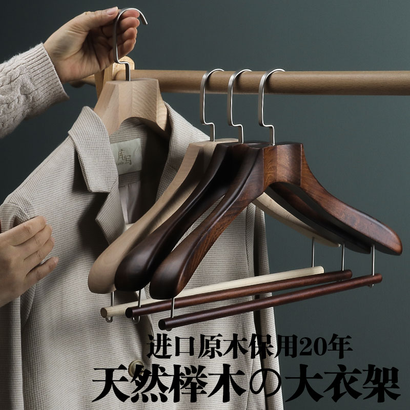 实木衣架侘寂风进口家用榉木加宽加厚原木衣撑皮草裤挂衣帽架裤架 - boeyddirn倍町旗舰店