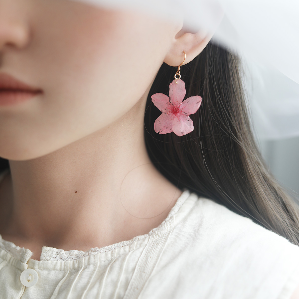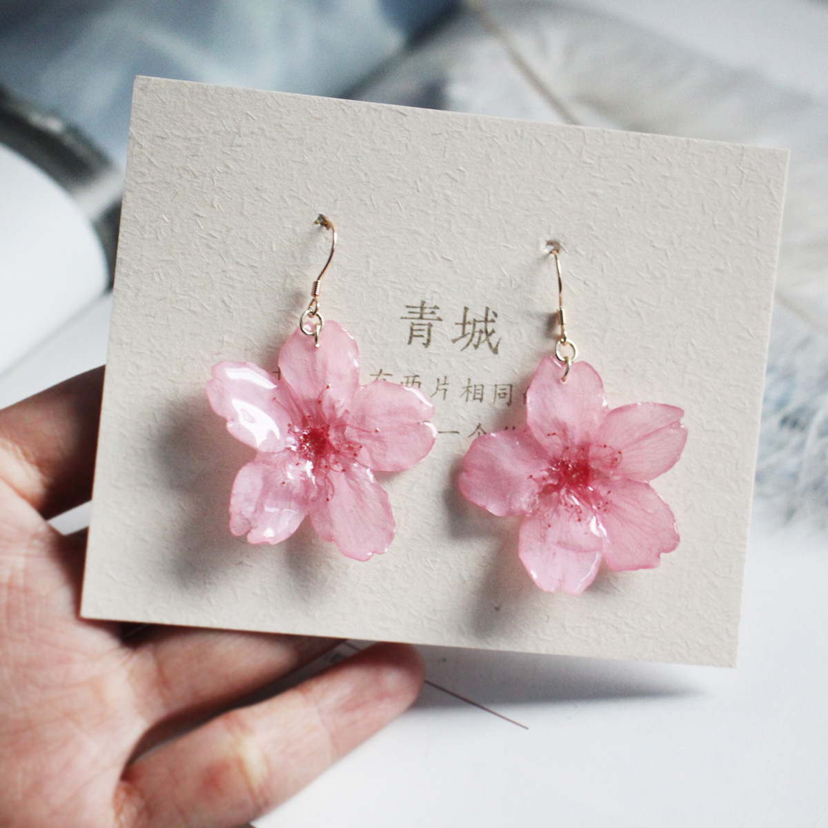 【真实樱花】原创设计特色粉色高级感夸张耳钉耳坠蚊香盘螺丝耳夹 - 青城手制