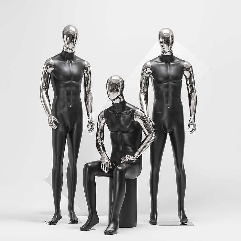 服装店男模特道具全身镀金头手假人橱窗陈列展示道具电镀男装模特