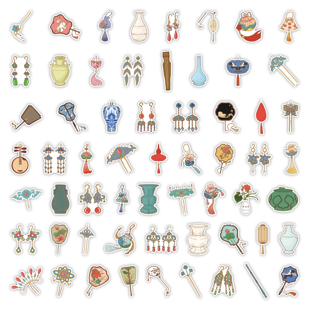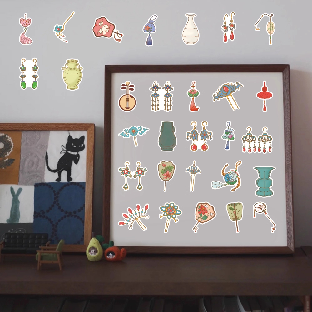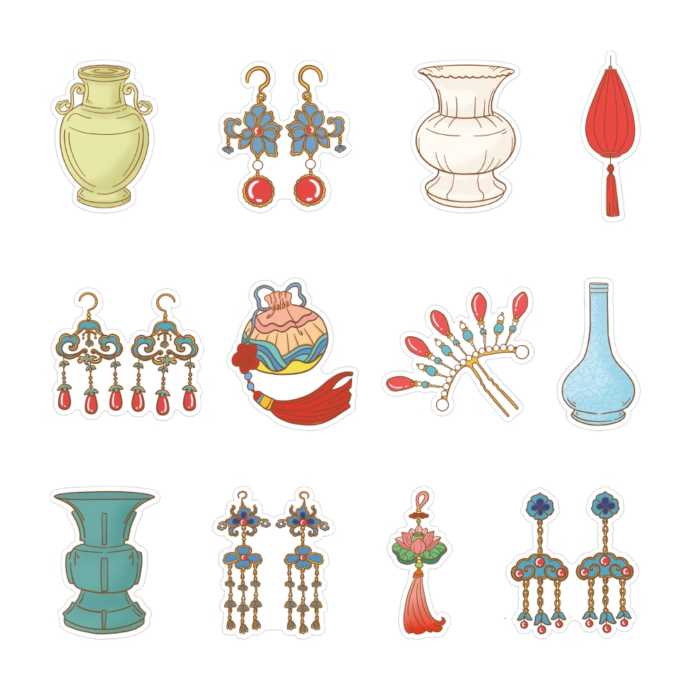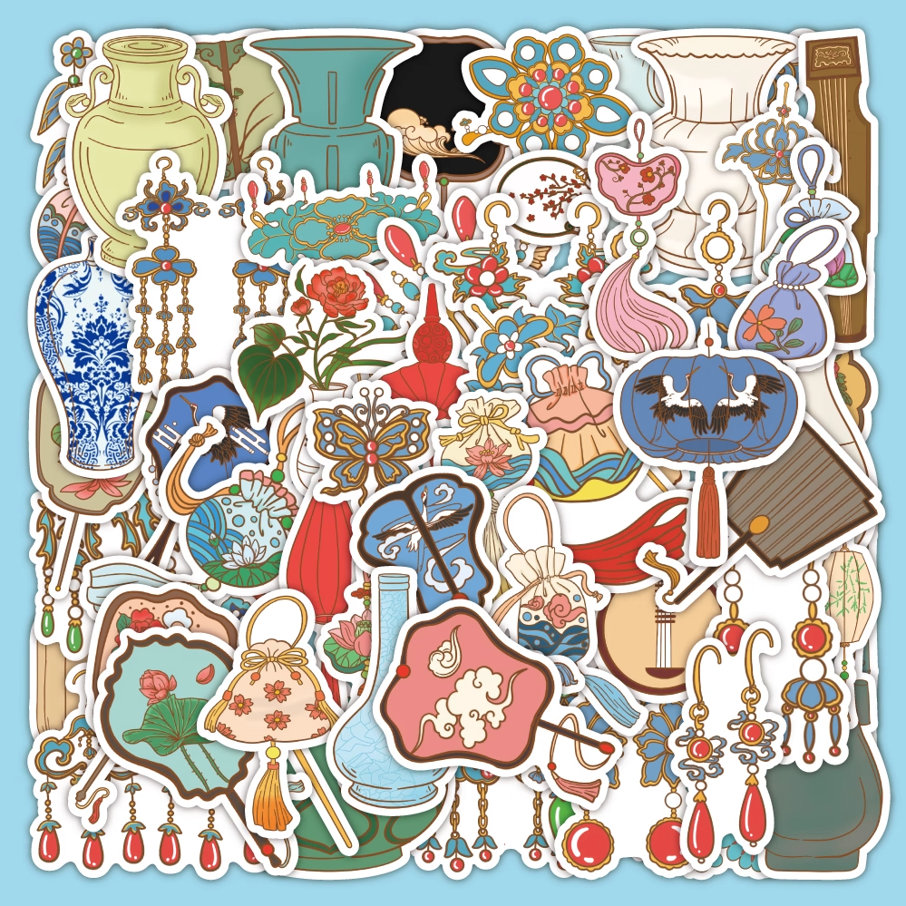 120张原创故宫怀旧古风物件贴纸国风周边卡通装饰手机行李箱贴画 - 星宝的雨花