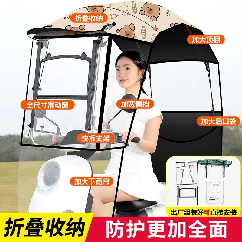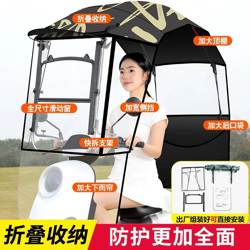 快拆篷电无品牌\/车雨棚电瓶摩托车动防风挡雨防伸缩式遮阳伞晒可 - 葵夕城橙1的小店88