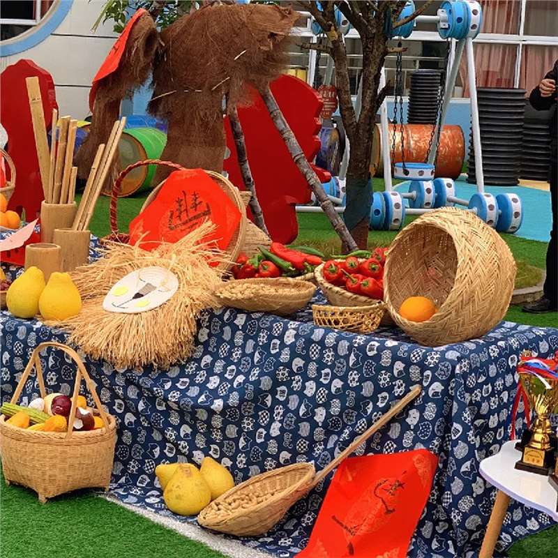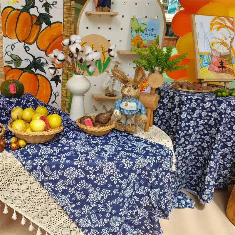 秋收冬藏幼儿园环创背景布乌镇蓝印青花布植物角丰收主题布置布料 - 晖赛天天工厂